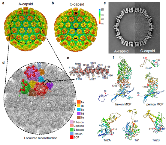 9月7日,我校夏宁邵教授团队在《自然》子刊《自然•微生物学》(Nature Microbiology)上发表题为“Near-atomic cryo-electron microscopy structures of varicella-zoster virus capsids”的研究论文。该研究首次揭示了疱疹病毒α家族的水痘-带状疱疹病毒(VZV)不同类型核衣壳的近原子分辨率结构,阐明了VZV核衣壳不同组成蛋白的相互作用网络与衣壳装配机制,可为进一步开展新型载体疫苗设计及抗病毒药物等研究提供重要支持。