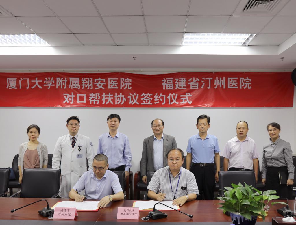签约仪式上,附属翔安医院副院长程继东教授与福建省汀州医院副院长钟仰彬签订了对口帮扶协议,两院将在学科建设、人才培养、教学科研、医院建设与管理等进行资源共享。通过建立医联体关系,实现远程会诊、双向转诊等,促进共赢发展。签约仪式的圆满成功,标志着两家医院正式建立对口帮扶关系。