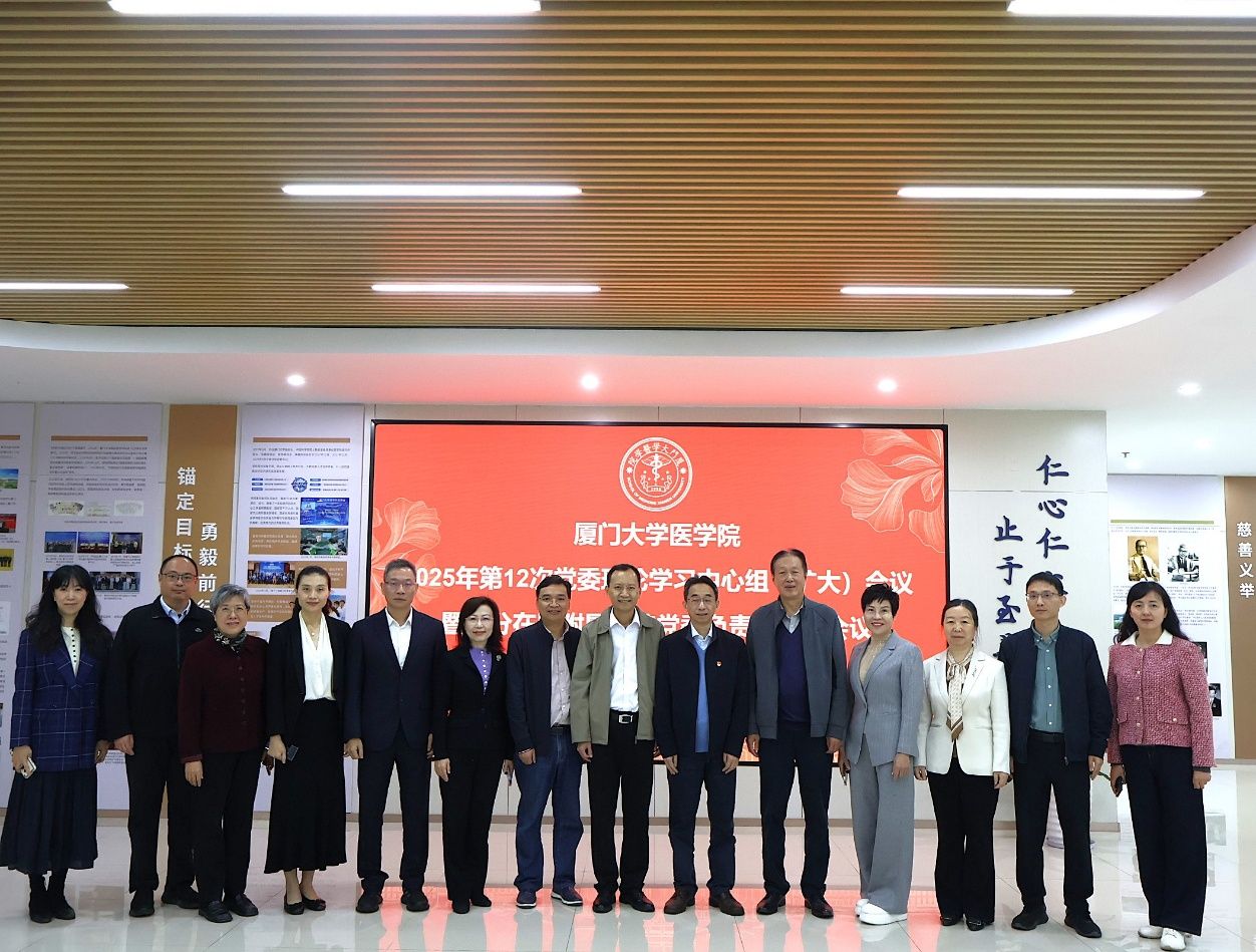 为深入学习贯彻党的二十届四中全会精神,凝聚思想共识,汇聚发展合力,进一步推进医学院与附属医院医教研协同创新发展,2025年12月25日上午,校医管办会同医学院党委在翔安校区爱礼楼北楼106会议室召开部分在厦附属医院党委负责人联席会议,并同期召开理论学习中心组(扩大)会议。