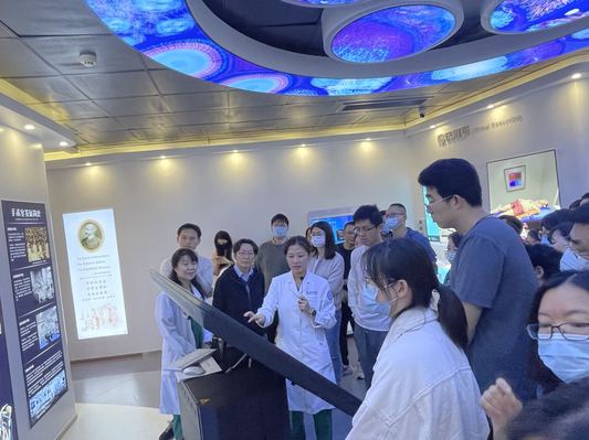 开班仪式后,张莉莉、付歆欣两位老师带领参训教职工参观附属翔安医院人体生命科学馆,利用馆内真实的人体塑化标本以及3D、VR、全息影像及三维重建等高端技术讲解了人体结构及功能,帮助参训教职工更好了解医学在守护人类健康发挥的重要作用。
