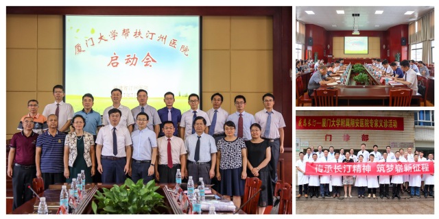 7月6日下午,在长汀县汀州医院会议室举行了“厦门大学附属翔安医院帮扶汀州医院见面会”,拉开了附属翔安医院在闽西山区医疗卫生事业对口帮扶的序幕,这是厦门大学与长汀县签订合作协议框架下医疗卫生领域的重要项目。长汀县副县长吴昊、县卫计局局长吴升峰、汀州医院院长钟梅昌,以及厦门大学医科建设与管理办公室申东杰、附属翔安医院副院长邵晨及专家团队,共50余人参加了见面会。