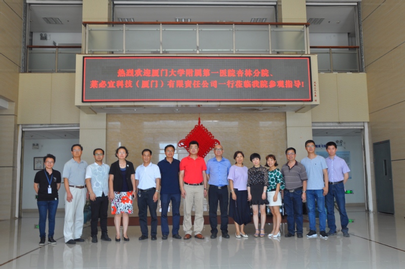 在医管办主任邵鹏飞、副主任史虞龙指导下,经党支部进一步多方组织协调,5月23日上午,附属第一医院杏林分院院长郑超、总支书记陈秋月以及与其合作共建BE/I期临床研究中心的莱必宜科技有限公司董事长康心汕、总裁办总裁助理冯岩等一行13人来访厦大药学院。药学院、医管办、杏林分院、莱必宜科技有限公司四方在一起深入座谈交流,来访人员还应邀参观了药学院部分科研实验室。