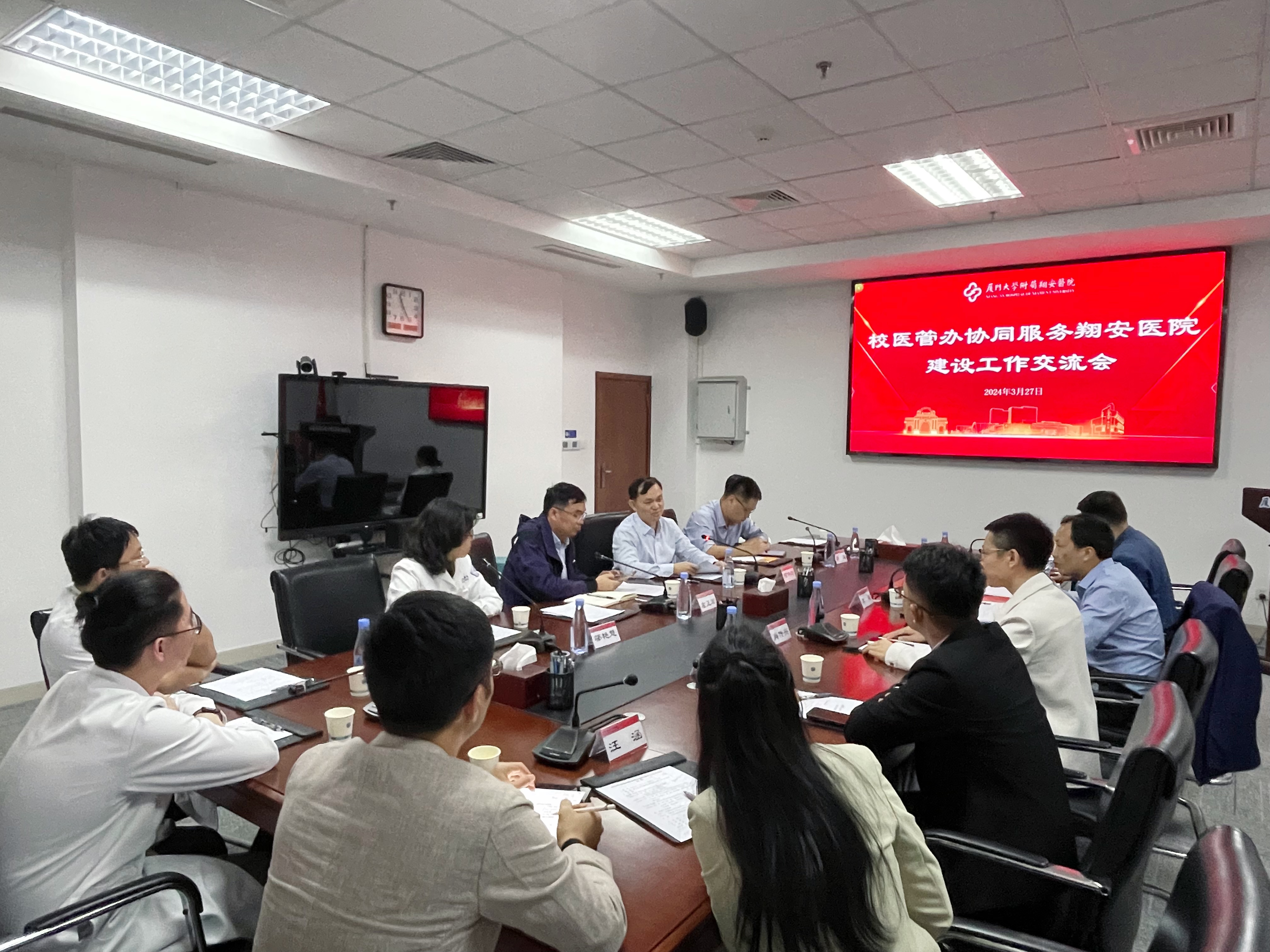 为深入学习贯彻党的二十大精神,巩固主题教育成果,落实学校第十二次党代会提出的加快新医科建设要求,助力附属翔安医院高质量发展,3月27日上午,校医管办召开协同服务翔安医院建设工作交流会。会议就进一步支持附属翔安医院建设发展相关议题展开交流研讨。
