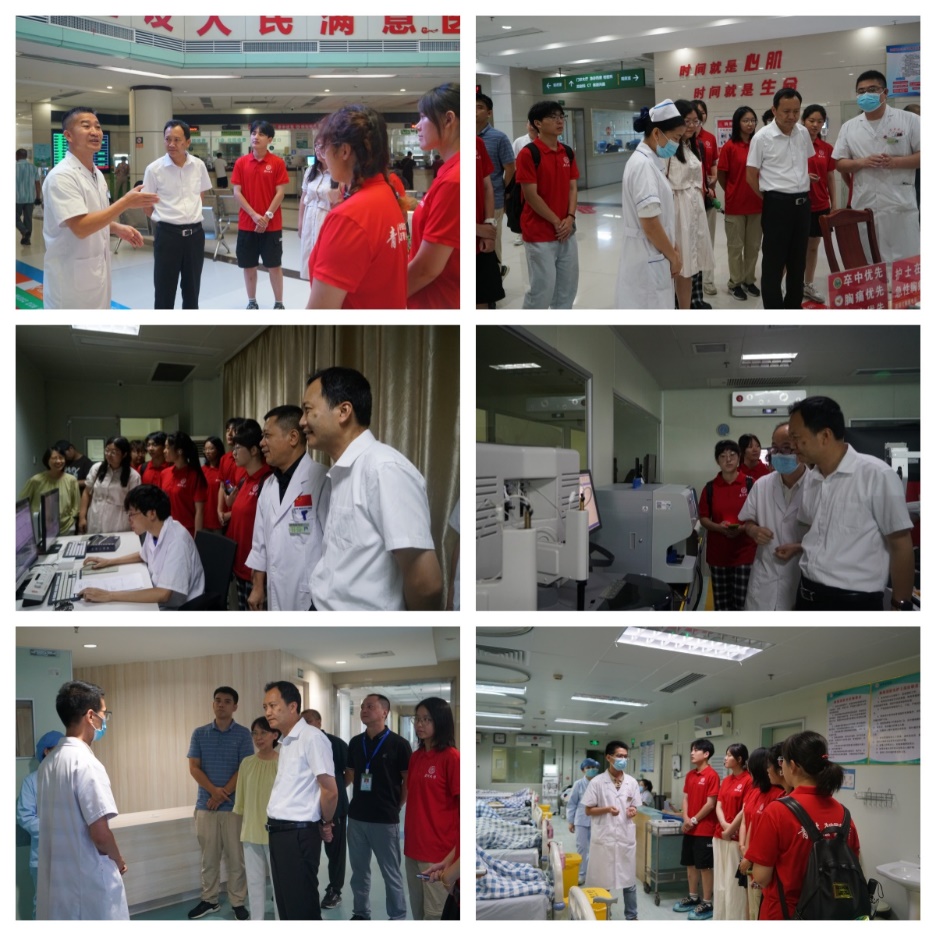 座谈会前,在梁丽平及相关科室负责人的陪同下,李峰一行先后来到医院的导诊台、急诊科、门诊、放射影像科、病理科、检验科等进行参访,详细了解科室的设施设备与医疗技术。此次参访,也为实践队的医学院老师同学们提供了一次深入体验基层医疗机构的宝贵机会,大家纷纷表示收获颇丰。