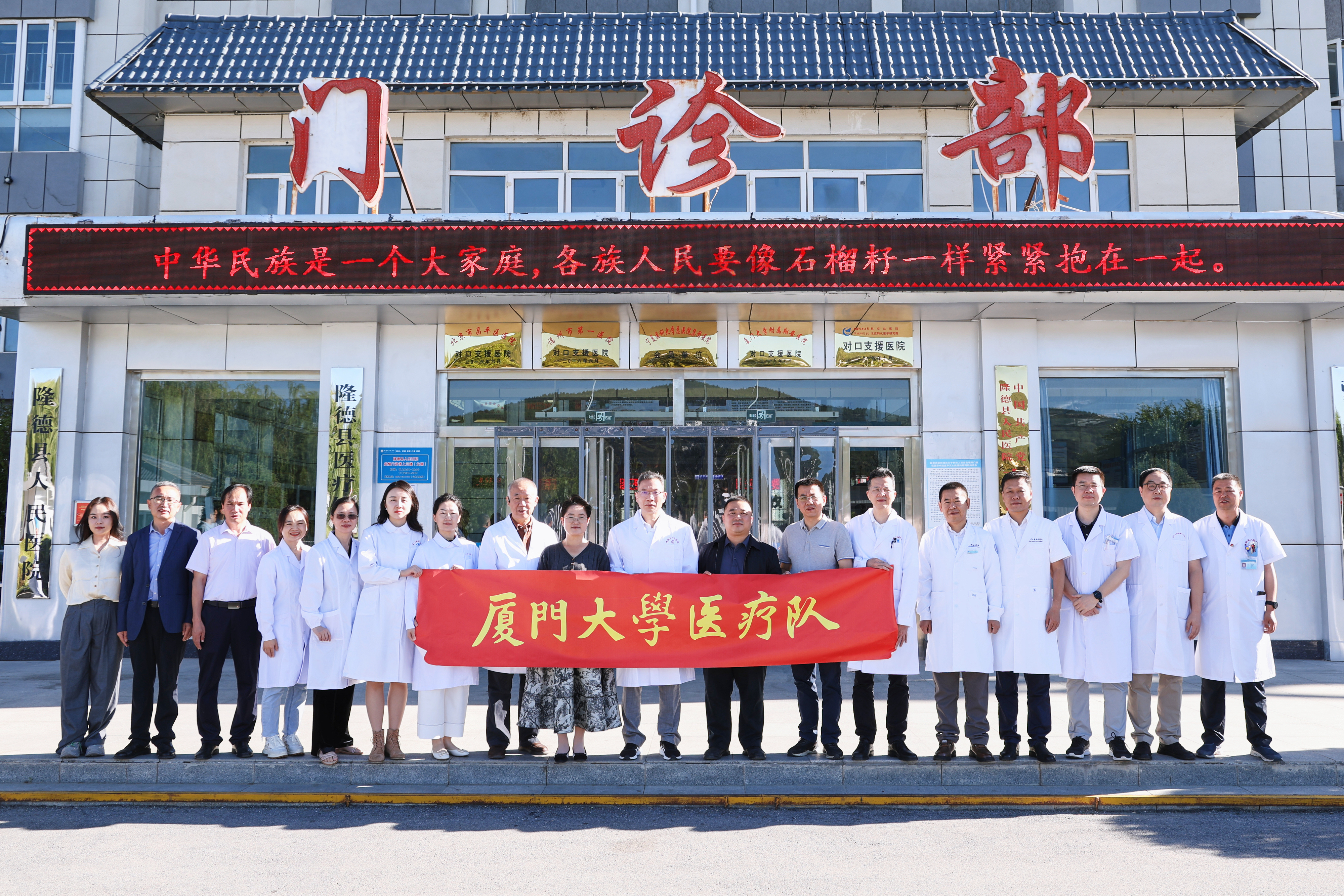 8月18日-24日,为进一步推动医疗卫生资源下沉,提升基层医疗服务水平,按照厦门大学定点帮扶与促进乡村振兴工作的总体部署,校医科建设与管理办公室精心组织附属翔安医院、附属中山医院、附属厦门眼科中心、附属第一医院、附属厦门心血管病医院和附属妇女儿童医院的医学专家,组建了一支17人的跨学科、多领域的专家医疗队,再赴宁夏隆德县开展为期一周的组团式医疗帮扶活动。医疗队由校医管办杨扬副主任担任领队、附属翔安医院院长助理张彤担任队长。