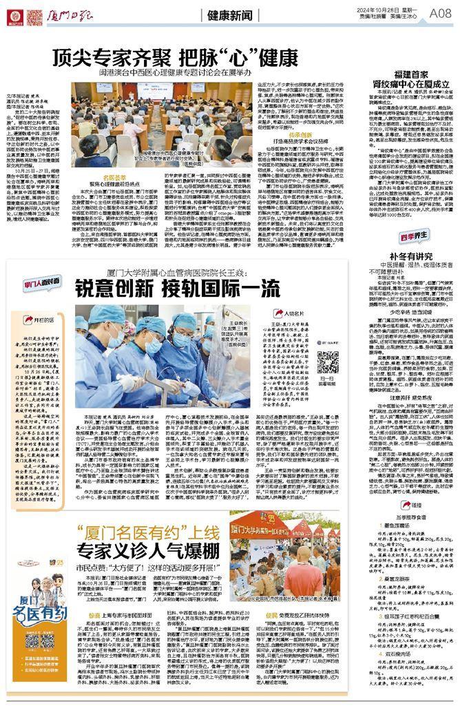 10 月 26 日起,《厦门日报》健康融媒体工作室全新推出 “掌门人面对面” 栏目,邀请各大医院及医疗机构主要负责人,走进融媒体采访工作室,共同开启健康城市的新视角。