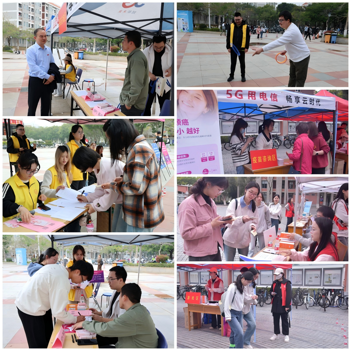 活动现场还设置了有奖知识竞答、套圈、两人三足等互动游戏,旨在加强师生对预防HPV和宫颈癌的认识。此外,公共卫生学院联合厦门万泰沧海生物技术有限公司,在现场设置了HPV疫苗预约咨询处,为在校师生送“苗”上门、现场咨询和预约服务。