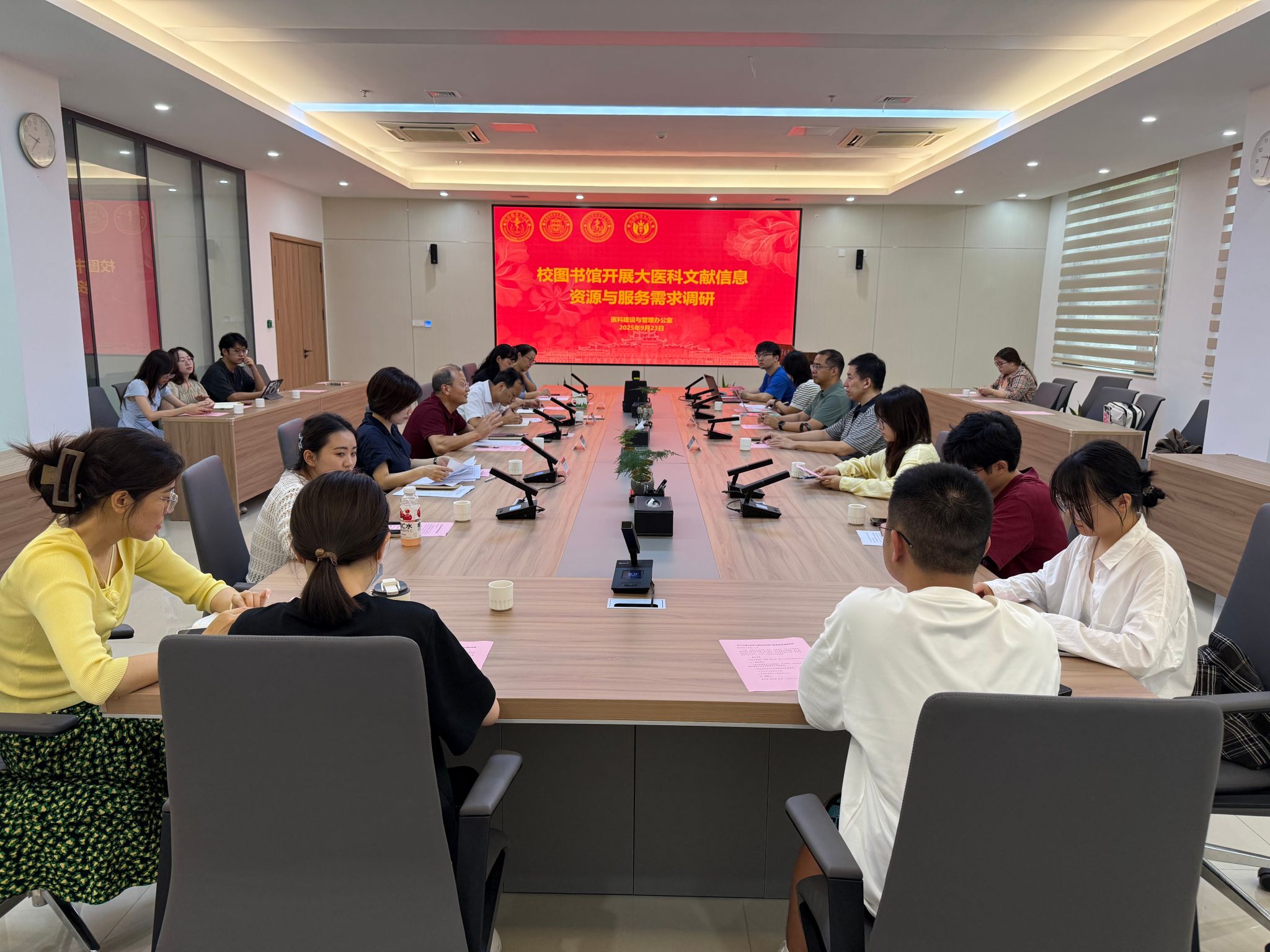 医科建设与管理办公室(以下简称"医管办")组织医学与生命科学学部各学院相关分管领导、科研秘书及师生代表参与座谈。校医管办主任、医学院党委书记李峰主持调研,图书馆副馆长陈娟、医管办副主任茹晓燕等出席调研活动。