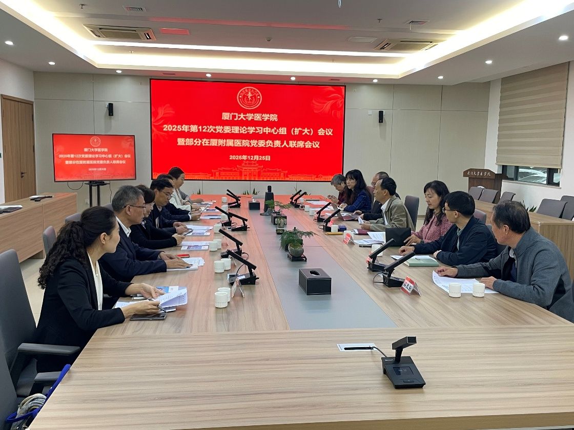 为深入学习贯彻党的二十届四中全会精神,凝聚思想共识,汇聚发展合力,进一步推进医学院与附属医院医教研协同创新发展,2025年12月25日上午,校医管办会同医学院党委在翔安校区爱礼楼北楼106会议室召开部分在厦附属医院党委负责人联席会议,并同期召开理论学习中心组(扩大)会议。